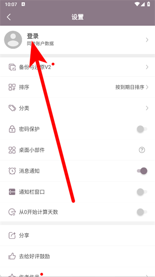 2、在設(shè)置頁面里,點擊登錄選項,進入登錄相關(guān)操作頁面。