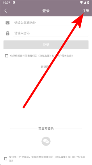 3、進入登錄頁面后,點擊右上角的注冊按鈕,跳轉(zhuǎn)到注冊界面。