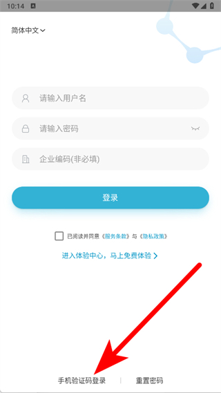 2、進入登錄頁后,點擊底部手機驗證碼登錄選項。
