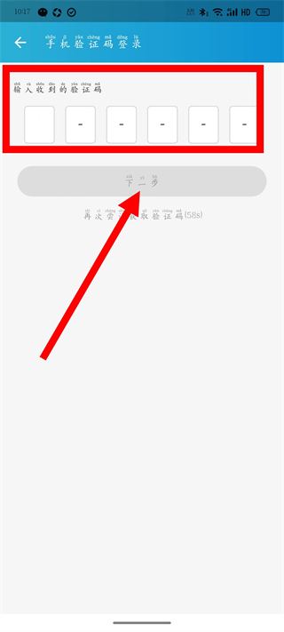 4、輸入收到的驗證碼,點擊下一步。