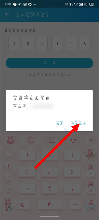5、彈出當(dāng)前手機未注冊彈窗,點擊去注冊,完成注冊后登錄。