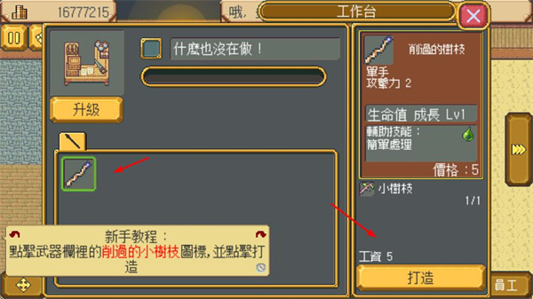 2、在工作臺界面,選擇材料打造裝備,消耗工資完成打造,提升店鋪的產(chǎn)品產(chǎn)出能力。