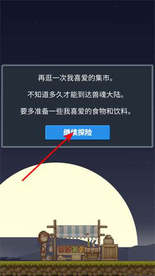 3、推進(jìn)劇情進(jìn)程,點(diǎn)擊繼續(xù)探險(xiǎn)按鈕,閱讀關(guān)于集市和獸魂大陸的劇情內(nèi)容,了解冒險(xiǎn)的背景。
