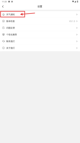 3、在設(shè)置界面,點(diǎn)擊天氣通知選項(xiàng),進(jìn)入早晚天氣提醒頁(yè)面。
