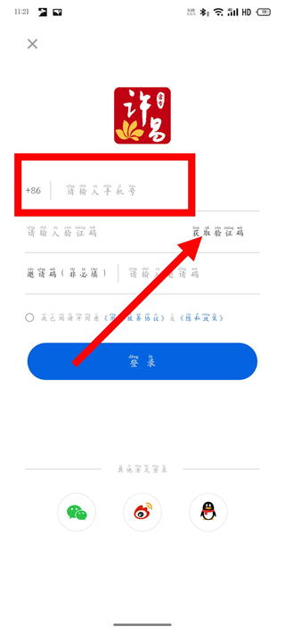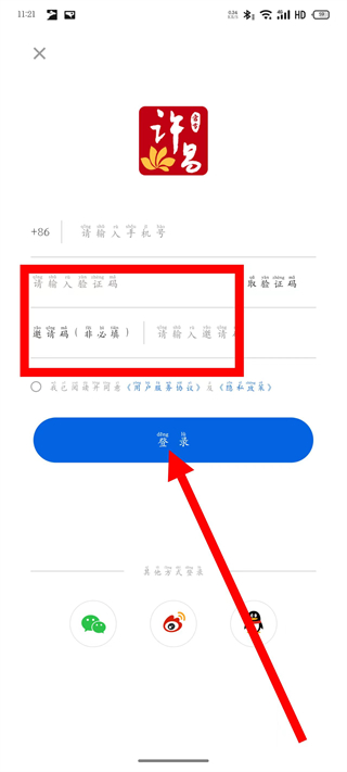 3、進入登錄頁面,填寫手機號,點擊獲取驗證碼,輸入收到的驗證碼。
