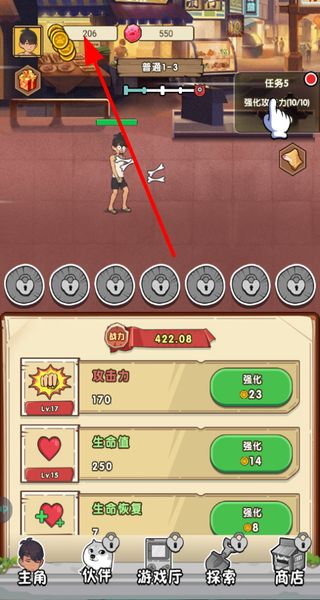 4、戰(zhàn)斗勝利后,可獲得金幣等獎勵,積累金幣用于后續(xù)強化角色屬性,提升整體戰(zhàn)力。