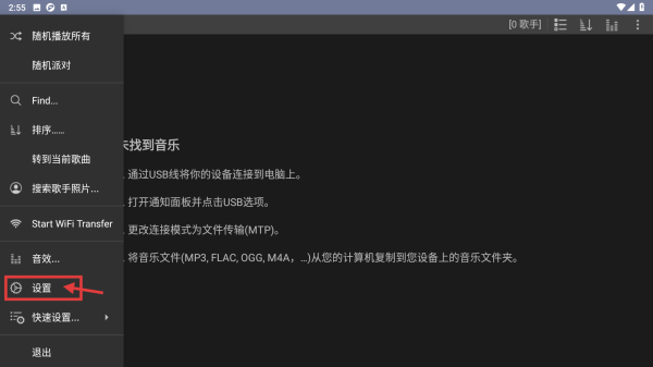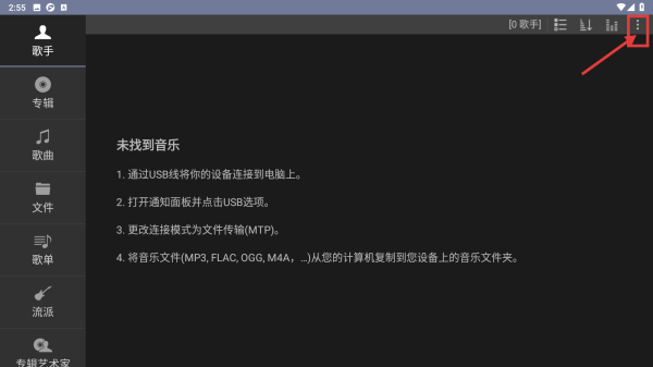1、打開音樂類應用,點擊右上角菜單按鈕,展開功能菜單。