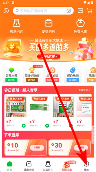 1、打開荷葉健康,點擊底部導(dǎo)航欄最右側(cè)的我的。