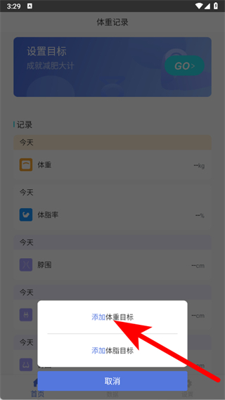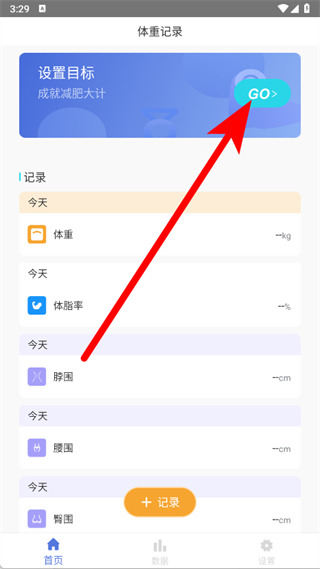 2、在體重記錄頁面,點擊設(shè)置目標(biāo)區(qū)域的GO按鈕。