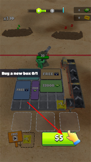 1、點擊綠色的$5按鈕購買新箱子,完成Buy a new box0/1任務,這是游戲初期拓展資源的關鍵操作。