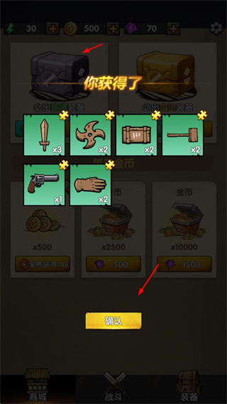 3、開啟寶箱獲取各類裝備和資源,為合成和戰(zhàn)斗提供物資。