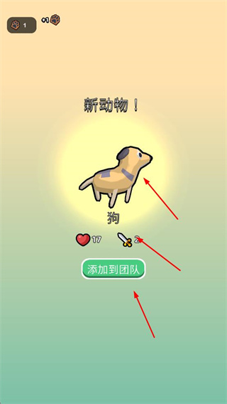 2、解鎖新動物如狗,查看其屬性生命值、攻擊力后添加到團(tuán)隊(duì),增強(qiáng)戰(zhàn)斗力。