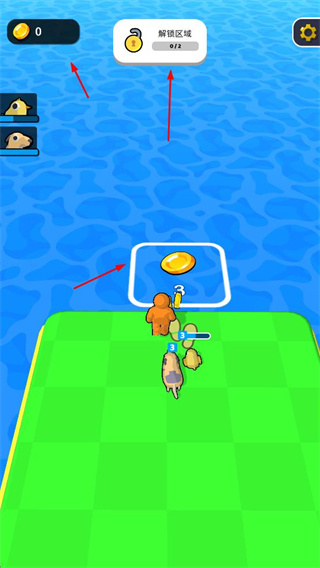 3、收集金幣,完成解鎖區(qū)域任務(wù),拓展探索范圍,獲取更多資源和動物。