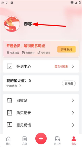 3、在個人中心頁面,點擊游客,進入登錄頁面。