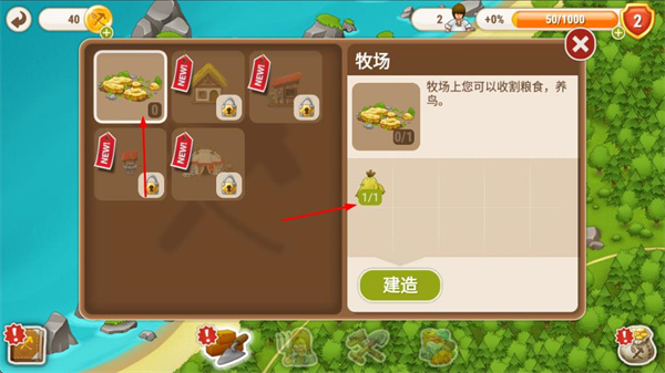 1、建造農(nóng)場(chǎng)設(shè)施,在牧場(chǎng)上收割糧食、養(yǎng)雞,發(fā)展農(nóng)業(yè)生產(chǎn)。