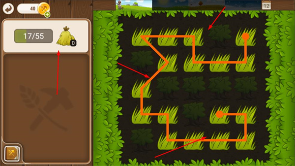 3、收割草地獲取草料資源,通過規(guī)劃收割路徑高效收集,積累資源用于建造和升級(jí)。