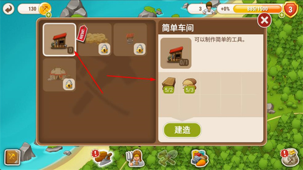 4、制作工具,提升資源收集能力,持續(xù)雇用工人、收割資源、建造設(shè)施、制作工具。