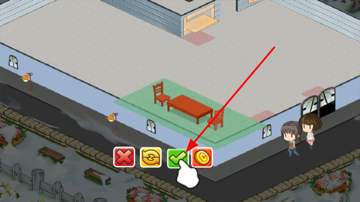 3、購買桌椅后,能在餐廳內(nèi)擺放,擺放好后點擊確認(rèn)按鈕,完成桌椅的布置,打造餐廳布局。