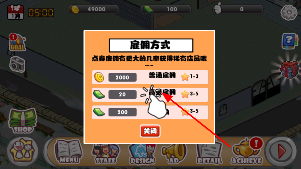 4、可以雇傭店員,有普通雇傭和高級雇傭等方式,花費不同,雇傭到的店員星級和稀有度有差異。