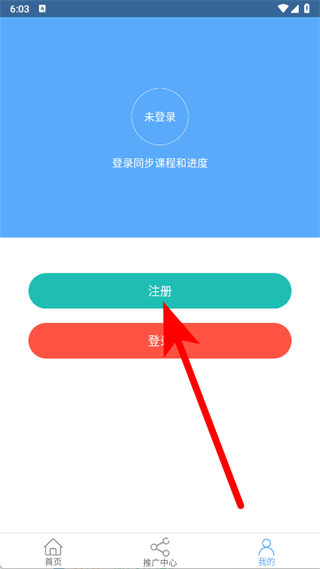 2、進(jìn)入我的頁(yè)面后,點(diǎn)擊注冊(cè)按鈕,進(jìn)入手機(jī)注冊(cè)頁(yè)面。
