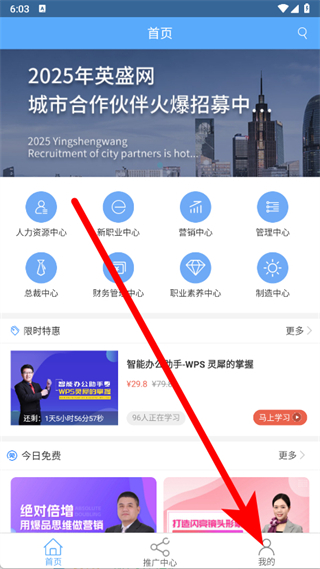 1、打開(kāi)英盛網(wǎng),點(diǎn)擊底部導(dǎo)航欄最右側(cè)的我的。