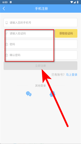 4、輸入收到的驗(yàn)證碼,設(shè)置密碼并再次確認(rèn)密碼,點(diǎn)擊立即注冊(cè),完成注冊(cè)。