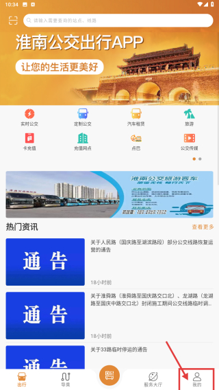 1、打開淮南公交出行APP,點(diǎn)擊底部我的選項(xiàng),進(jìn)入個(gè)人中心頁面。