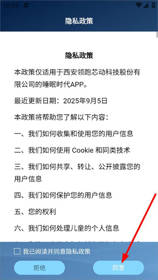 1、首先在隱私政策頁面,點擊同意,進入登錄頁面。