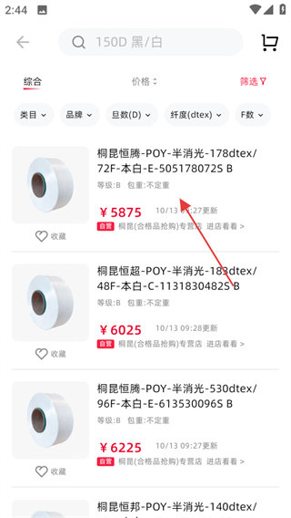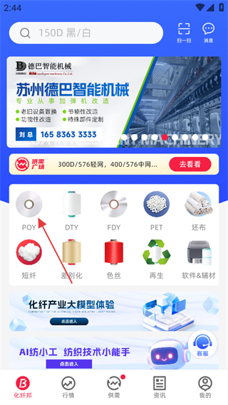 1、進入化纖邦,在首頁點擊POY分類,進入POY商品列表頁面。
