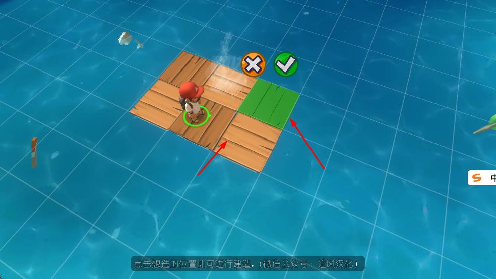 1、在木筏上點擊合適位置進行建造,擴展木筏面積,為生存提供更多空間。