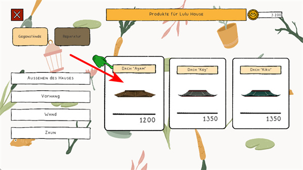 4、在商店界面,可購買房屋的屋頂?shù)妊b飾或建筑部件,如Dach Ayami等,花費相應金幣購買后可裝飾房屋。