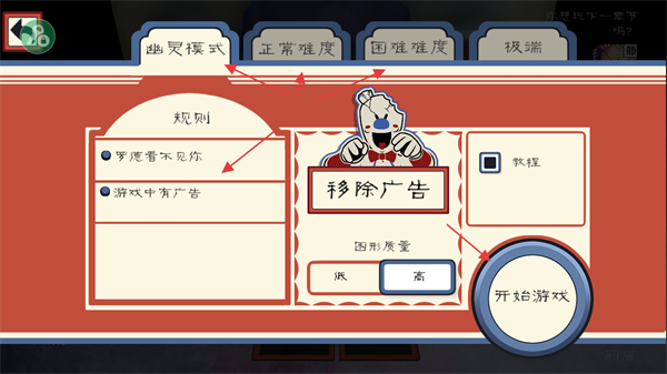1、選擇游戲難度,查看規(guī)則,設置圖形質(zhì)量,點擊開始游戲。