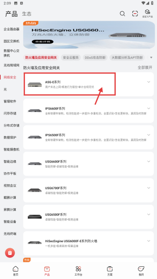 3、在網(wǎng)絡(luò)安全產(chǎn)品列表中,選擇ASG-E系列產(chǎn)品,進(jìn)入產(chǎn)品詳情頁面。