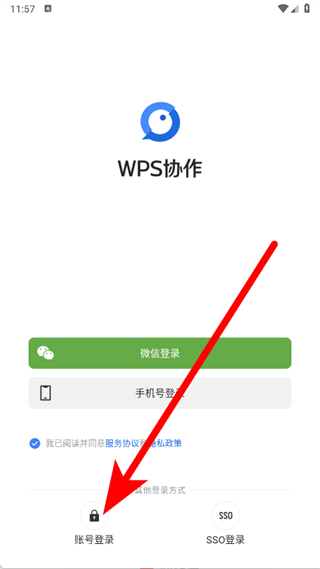 2、進(jìn)入登錄頁(yè)面后,點(diǎn)擊頁(yè)面下方的賬號(hào)登錄選項(xiàng)。