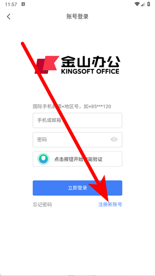 3、在賬號(hào)登錄頁(yè)面,點(diǎn)擊注冊(cè)新賬號(hào),進(jìn)入新的賬號(hào)注冊(cè)頁(yè)面。