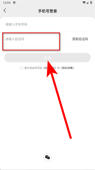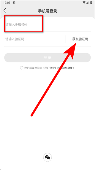 3、在手機號碼登錄頁面,輸入框中填寫手機號,點擊獲取驗證碼按鈕。