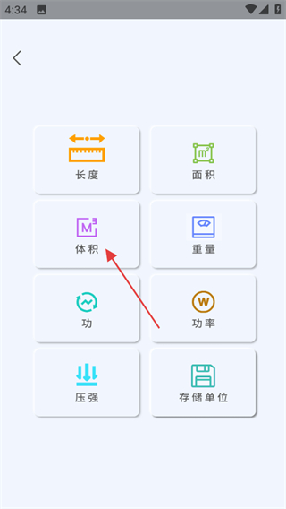 2、在單位轉(zhuǎn)換頁面,選擇體積,進(jìn)入體積單位轉(zhuǎn)換頁面。