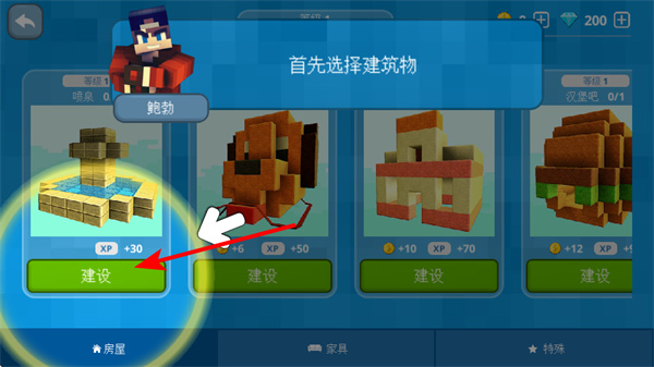 3、在建筑選擇界面,可選擇不同的建筑物,如噴泉、動物造型建筑等,點擊建設按鈕可建設。