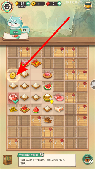 1、點(diǎn)擊棋子可查看詳細(xì)信息,將相同棋子合并可達(dá)到下一個規(guī)格,使用后可獲得銅錢,銅錢可用于小鎮(zhèn)建設(shè)等多種用途。