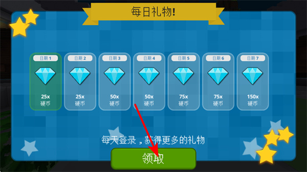 4、每天登錄游戲,點擊領(lǐng)取按鈕,可獲取每日禮物,禮物包含不同數(shù)量硬幣,提供支持。
