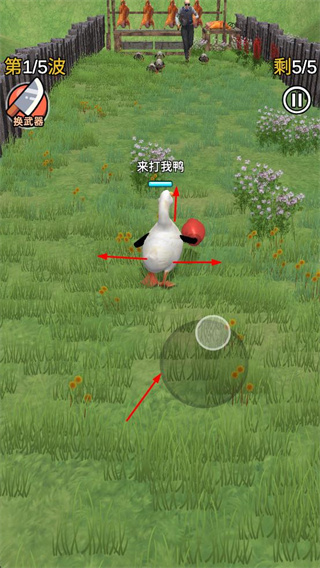 1、操控鴨子在草地上移動,躲避敵人攻擊的同時,向敵人發(fā)起進攻。