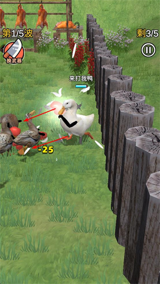 4、在多波次戰(zhàn)斗中,不斷擊敗敵人,應對越來越多的敵方鴨子。