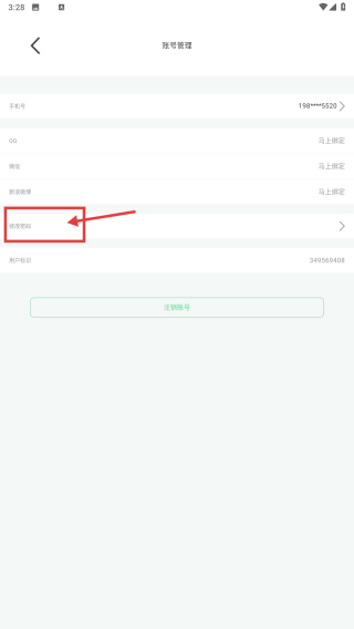 3、在賬號(hào)管理頁面,點(diǎn)擊修改密碼選項(xiàng),進(jìn)入修改密碼頁面。