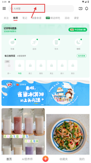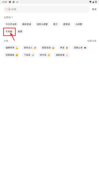 1、打開美食類應用,在頂部搜索欄輸入大閘蟹,進入搜索結果頁面。
