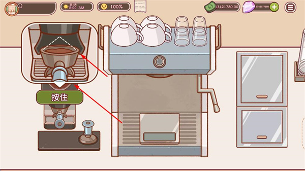 2、按住研磨機(jī)的操作區(qū)域,完成咖啡豆的研磨過程,為咖啡制作提供原料。