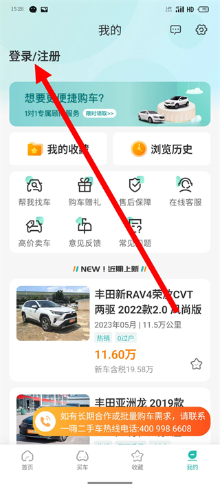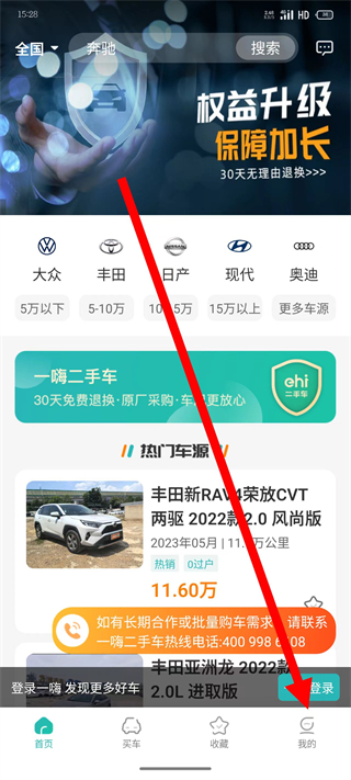 1、打開一嗨二手車,點擊頁面底部的我的,進入個人頁面。