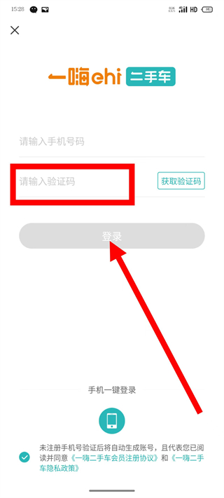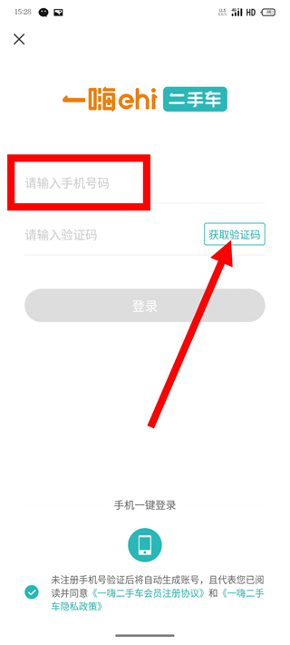 3、進入登錄頁面后,輸入框中填寫手機號,點擊獲取驗證碼按鈕。