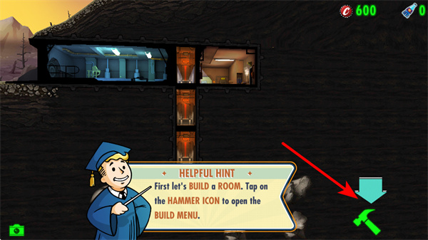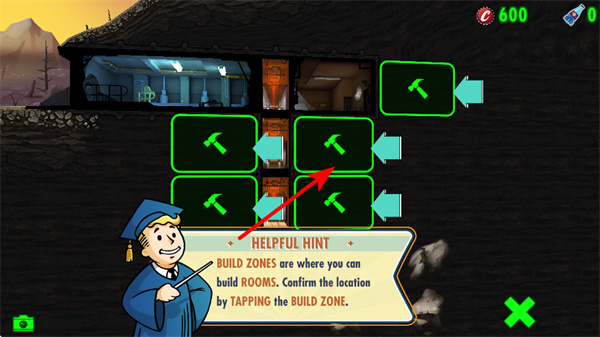 3、在帶有綠色錘子圖標(biāo)的建造區(qū)域中,點擊對應(yīng)區(qū)域以確認房間建造位置。這些區(qū)域是可建設(shè)房間的指定空間。