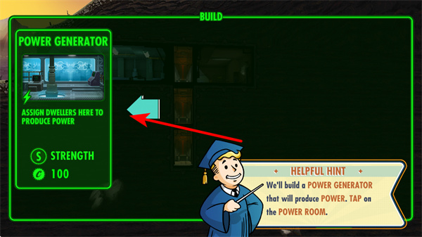 4、在建造菜單中選擇POWER GENERATOR發(fā)電室,該房間需分配居民生產(chǎn)電力,是避難所維持運轉(zhuǎn)的核心設(shè)施之一。