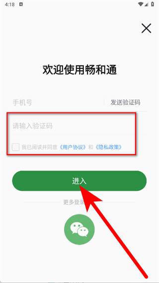 4、輸入收到的驗證碼,勾選我已閱讀并同意后,點擊進入。